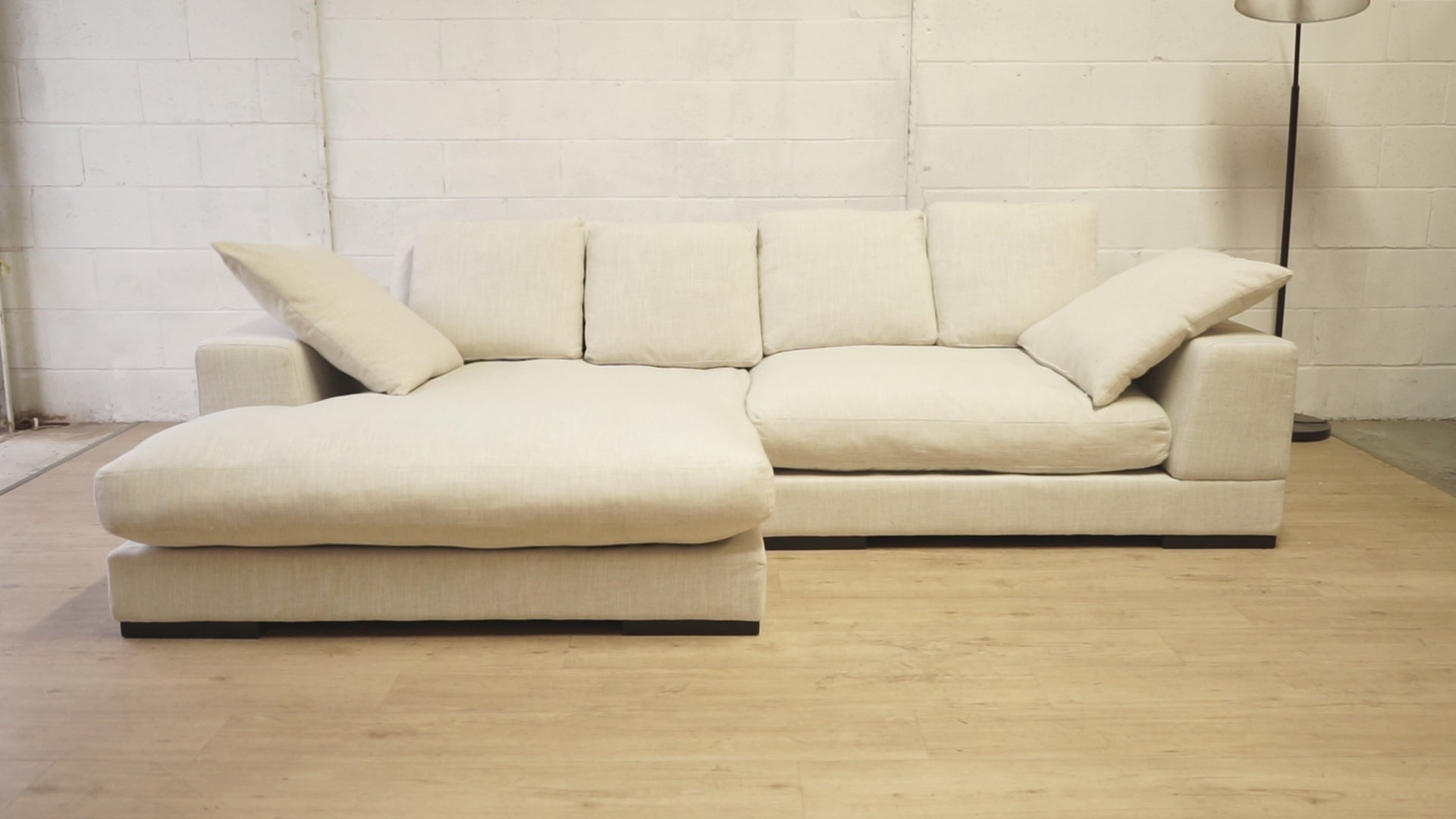 A fusion of comfort and elegance with clean lines and plush cushions, the Plunge sectional is masterfully crafted to maximize space and provide unparalleled relaxation. Its versatile flip chaise feature allows a left or right-side orientation that effortlessly adapts to create a sanctuary of style and repose, while its improved channeling and filling distribution ensures soft landings and comfort for years to come.